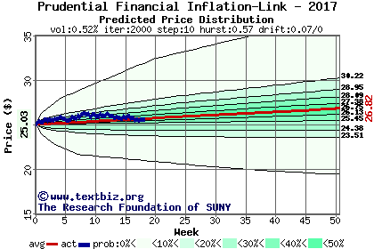 The following graph plots the year-to-date performance of the stock for 2017 compared to the probability calculated by a random walk model.