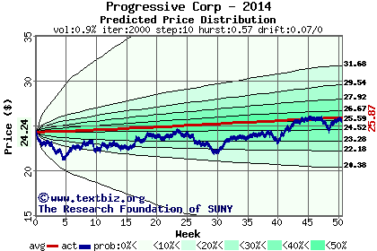 The following graph plots the year-to-date performance of the stock for 2014 compared to the probability calculated by a random walk model.