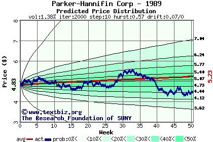 The following graph plots the year-to-date performance of the stock for 1989 compared to the probability calculated by a random walk model.