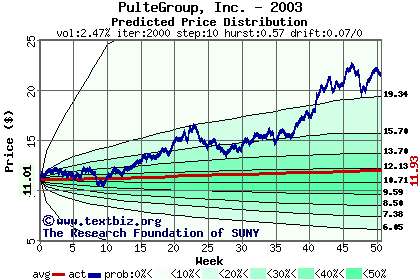 The following graph plots the year-to-date performance of the stock for 2003 compared to the probability calculated by a random walk model.