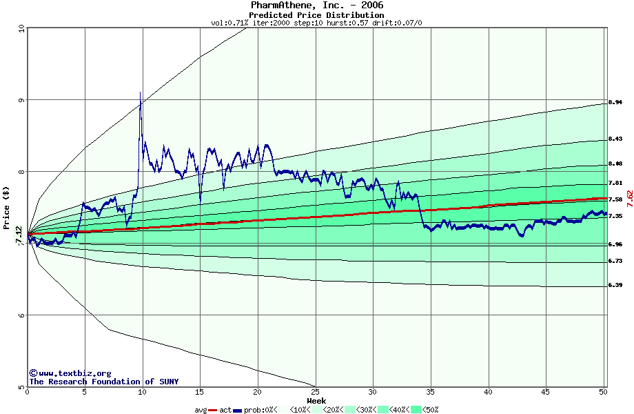 The following graph plots the year-to-date performance of the stock for 2006 compared to the probability calculated by a random walk model.