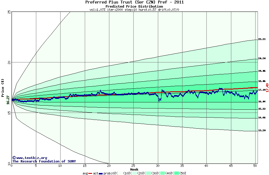 The following graph plots the year-to-date performance of the stock for 2011 compared to the probability calculated by a random walk model.