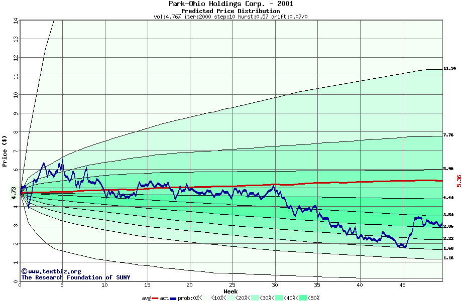 The following graph plots the year-to-date performance of the stock for 2001 compared to the probability calculated by a random walk model.