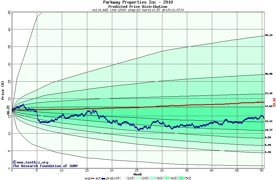 The following graph plots the year-to-date performance of the stock for 2010 compared to the probability calculated by a random walk model.