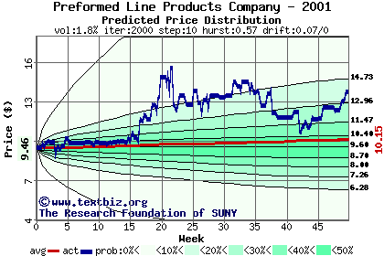 The following graph plots the year-to-date performance of the stock for 2001 compared to the probability calculated by a random walk model.