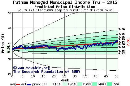 The high to date and low to date prices of the stock plotted against a random walk model for 2015 (what's this?).