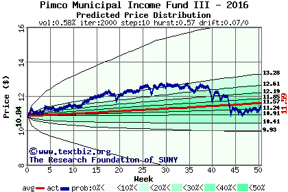 The high to date and low to date prices of the stock plotted against a random walk model for 2016 (what's this?).