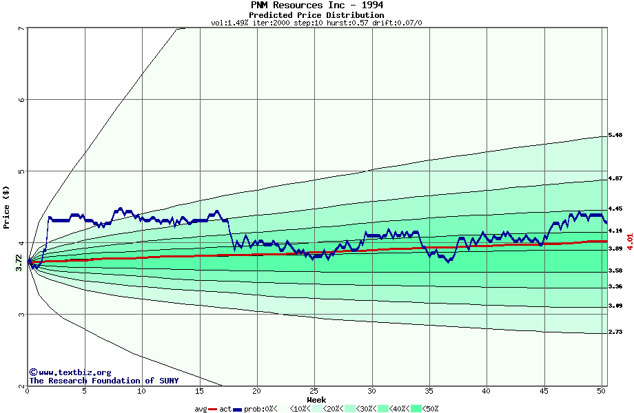 The following graph plots the year-to-date performance of the stock for 1994 compared to the probability calculated by a random walk model.