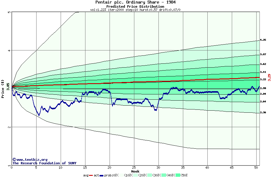 The following graph plots the year-to-date performance of the stock for 1984 compared to the probability calculated by a random walk model.