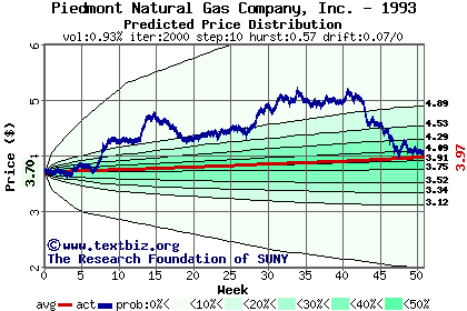 The following graph plots the year-to-date performance of the stock for 1993 compared to the probability calculated by a random walk model.