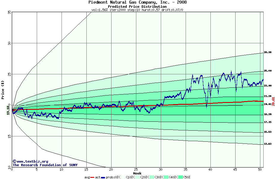 The following graph plots the year-to-date performance of the stock for 2008 compared to the probability calculated by a random walk model.