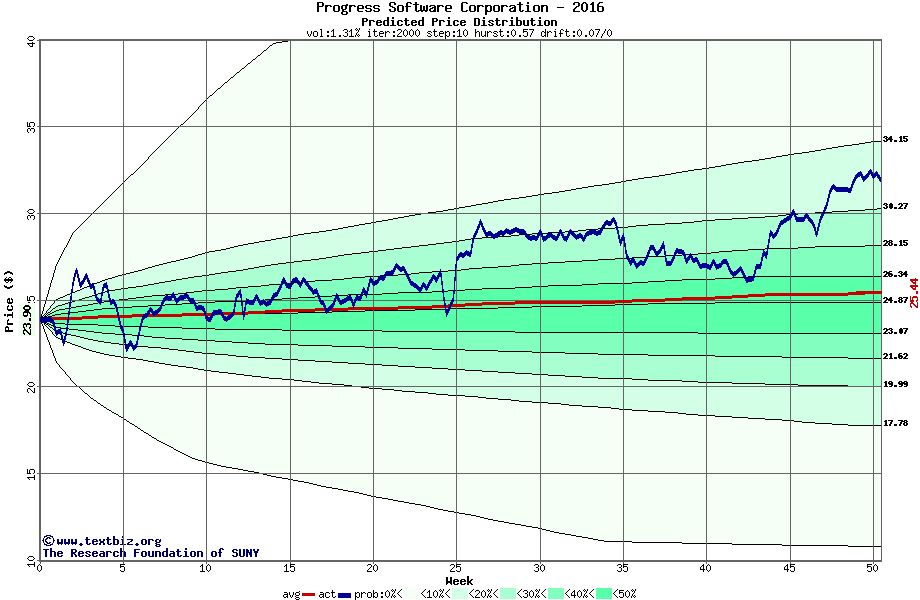 The following graph plots the year-to-date performance of the stock for 2016 compared to the probability calculated by a random walk model.