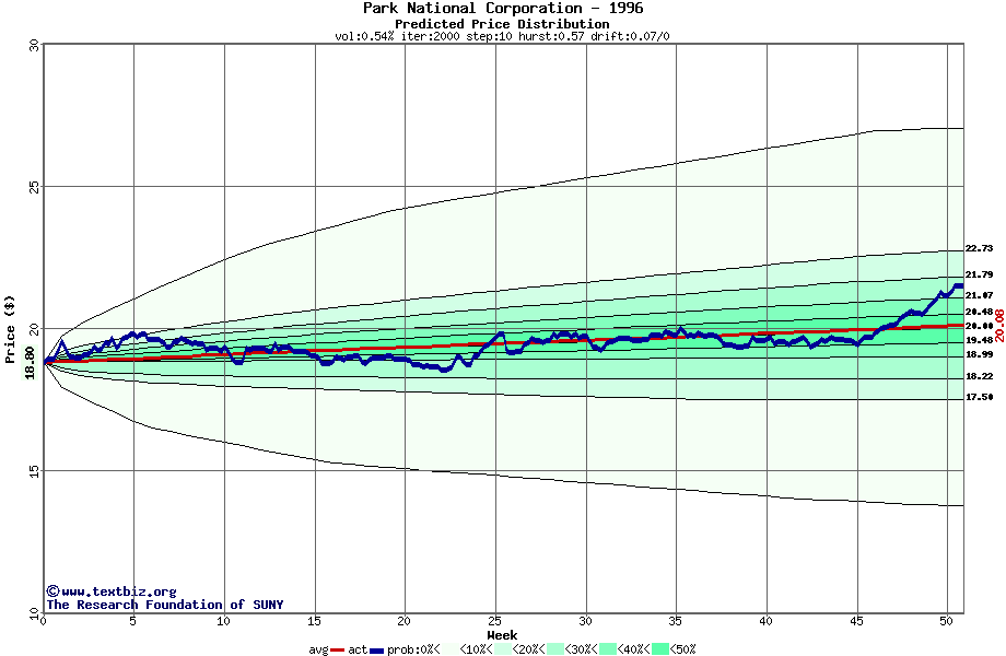 The following graph plots the year-to-date performance of the stock for 1996 compared to the probability calculated by a random walk model.