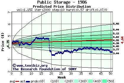 The following graph plots the year-to-date performance of the stock for 1986 compared to the probability calculated by a random walk model.