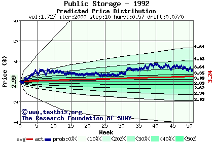 The following graph plots the year-to-date performance of the stock for 1992 compared to the probability calculated by a random walk model.