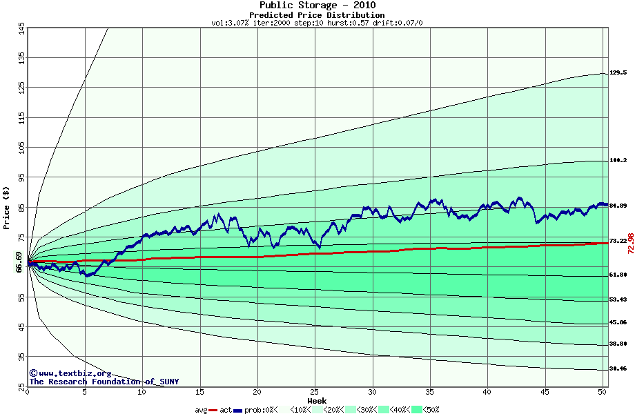 The following graph plots the year-to-date performance of the stock for 2010 compared to the probability calculated by a random walk model.