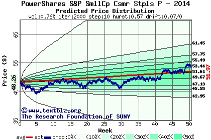 The following graph plots the year-to-date performance of the stock for 2014 compared to the probability calculated by a random walk model.