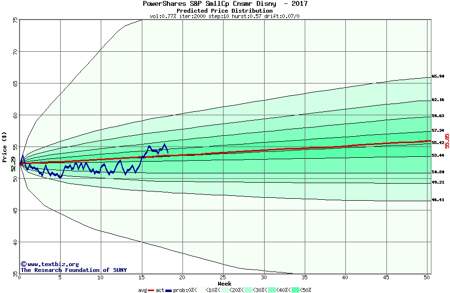 The following graph plots the year-to-date performance of the stock for 2017 compared to the probability calculated by a random walk model.