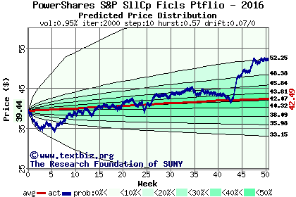 The following graph plots the year-to-date performance of the stock for 2016 compared to the probability calculated by a random walk model.
