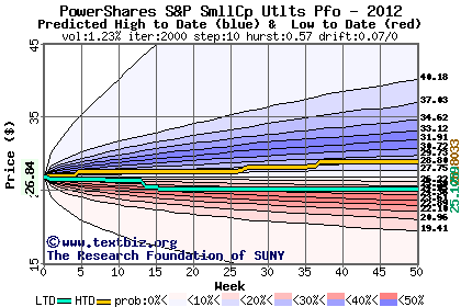 The following graph plots the year-to-date performance of the stock for 2012 compared to the probability calculated by a random walk model.
