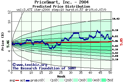 The following graph plots the year-to-date performance of the stock for 2004 compared to the probability calculated by a random walk model.