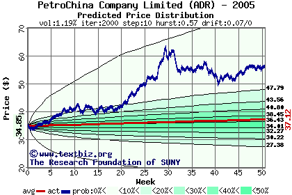 The following graph plots the year-to-date performance of the stock for 2005 compared to the probability calculated by a random walk model.