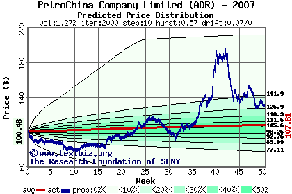 The following graph plots the year-to-date performance of the stock for 2007 compared to the probability calculated by a random walk model.