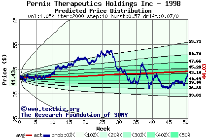 The following graph plots the year-to-date performance of the stock for 1998 compared to the probability calculated by a random walk model.