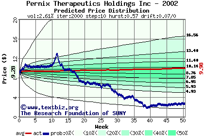 The following graph plots the year-to-date performance of the stock for 2002 compared to the probability calculated by a random walk model.