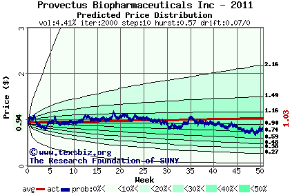 The following graph plots the year-to-date performance of the stock for 2011 compared to the probability calculated by a random walk model.