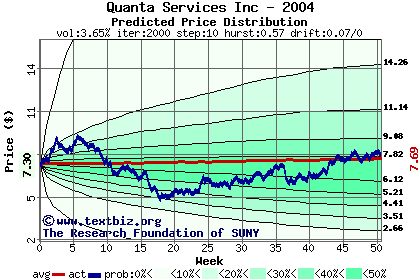 The following graph plots the year-to-date performance of the stock for 2004 compared to the probability calculated by a random walk model.