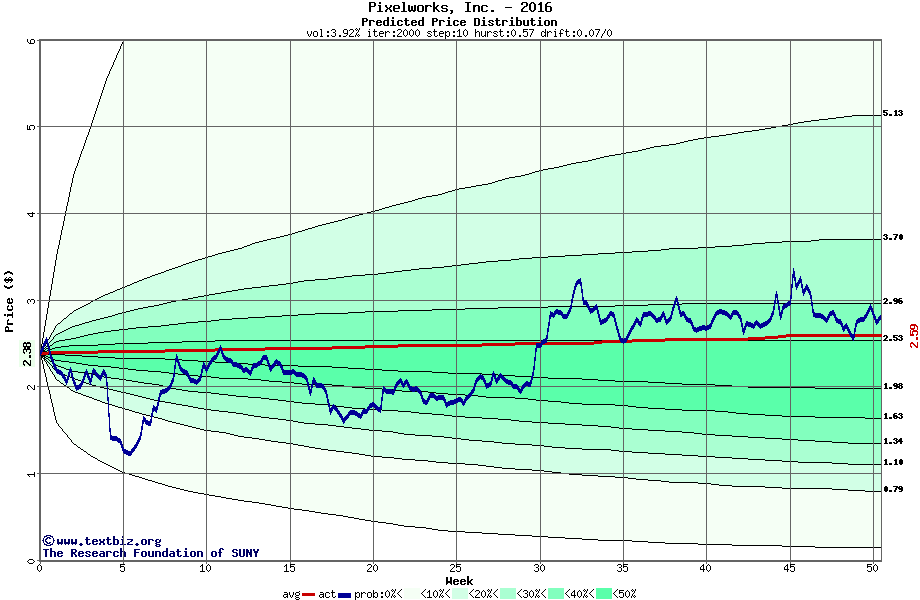 The following graph plots the year-to-date performance of the stock for 2016 compared to the probability calculated by a random walk model.