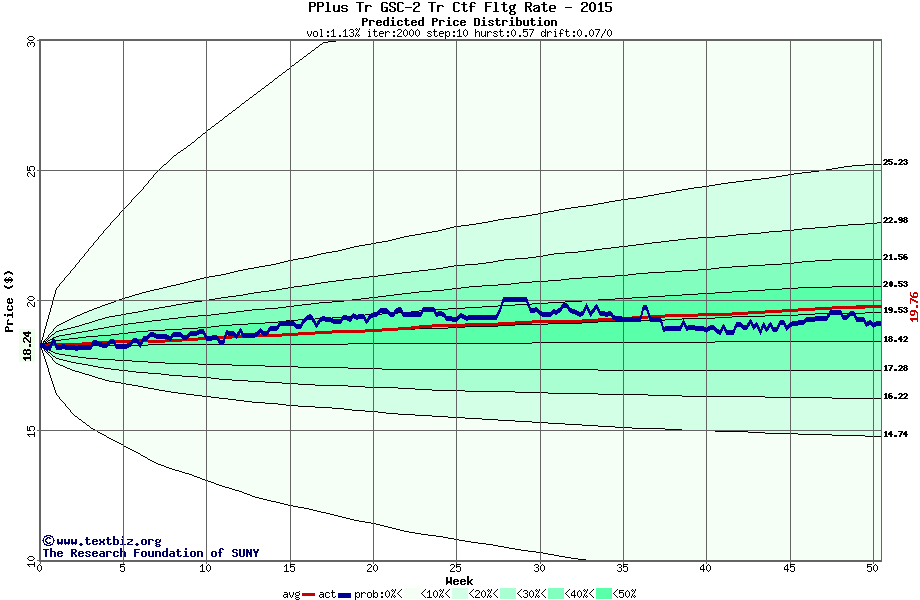 The following graph plots the year-to-date performance of the stock for 2015 compared to the probability calculated by a random walk model.
