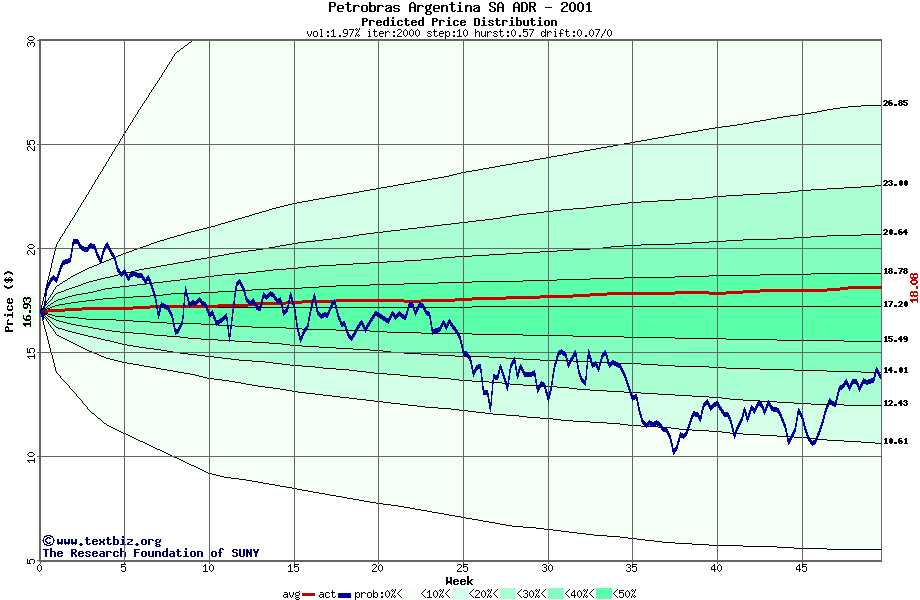 The following graph plots the year-to-date performance of the stock for 2001 compared to the probability calculated by a random walk model.