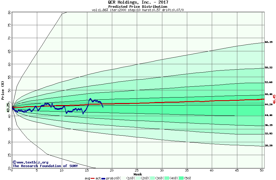 The following graph plots the year-to-date performance of the stock for 2017 compared to the probability calculated by a random walk model.