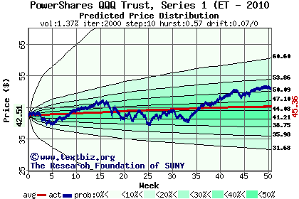 The following graph plots the year-to-date performance of the stock for 2010 compared to the probability calculated by a random walk model.