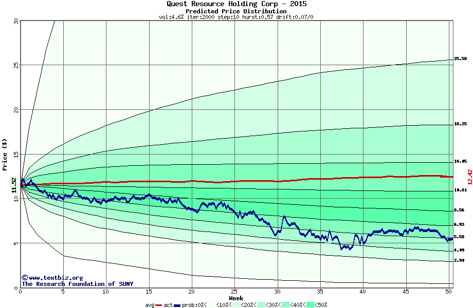 The following graph plots the year-to-date performance of the stock for 2015 compared to the probability calculated by a random walk model.