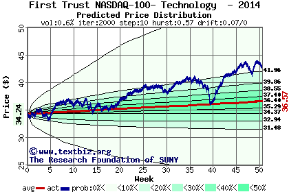 The following graph plots the year-to-date performance of the stock for 2014 compared to the probability calculated by a random walk model.