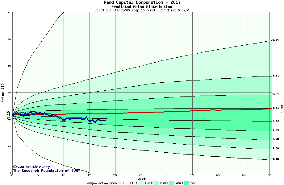 The following graph plots the year-to-date performance of the stock for 2017 compared to the probability calculated by a random walk model.