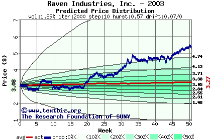 The following graph plots the year-to-date performance of the stock for 2003 compared to the probability calculated by a random walk model.