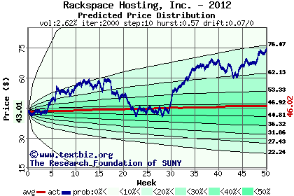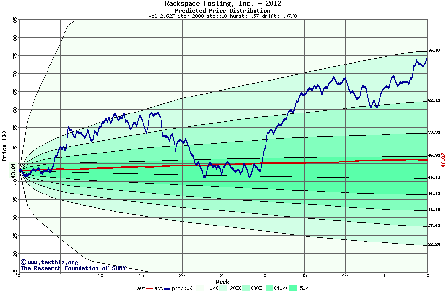 The following graph plots the year-to-date performance of the stock for 2012 compared to the probability calculated by a random walk model.