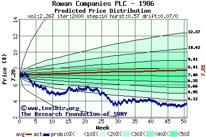 The following graph plots the year-to-date performance of the stock for 1986 compared to the probability calculated by a random walk model.