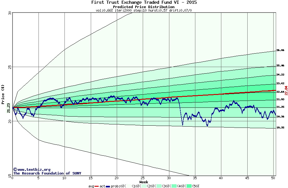 The following graph plots the year-to-date performance of the stock for 2015 compared to the probability calculated by a random walk model.