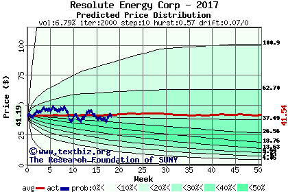 The high to date and low to date prices of the stock plotted against a random walk model for 2017 (what's this?).