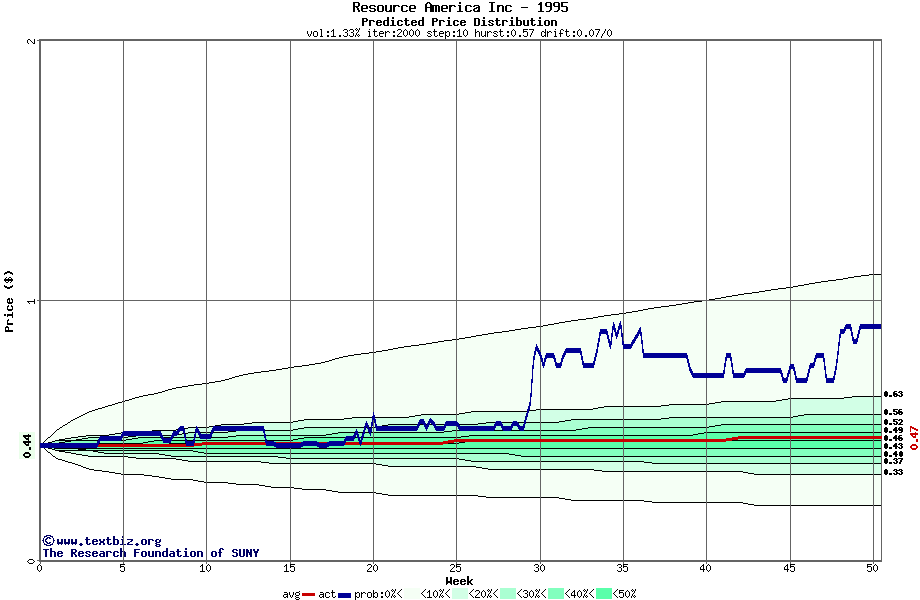 The following graph plots the year-to-date performance of the stock for 1995 compared to the probability calculated by a random walk model.