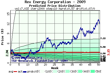 The following graph plots the year-to-date performance of the stock for 2009 compared to the probability calculated by a random walk model.