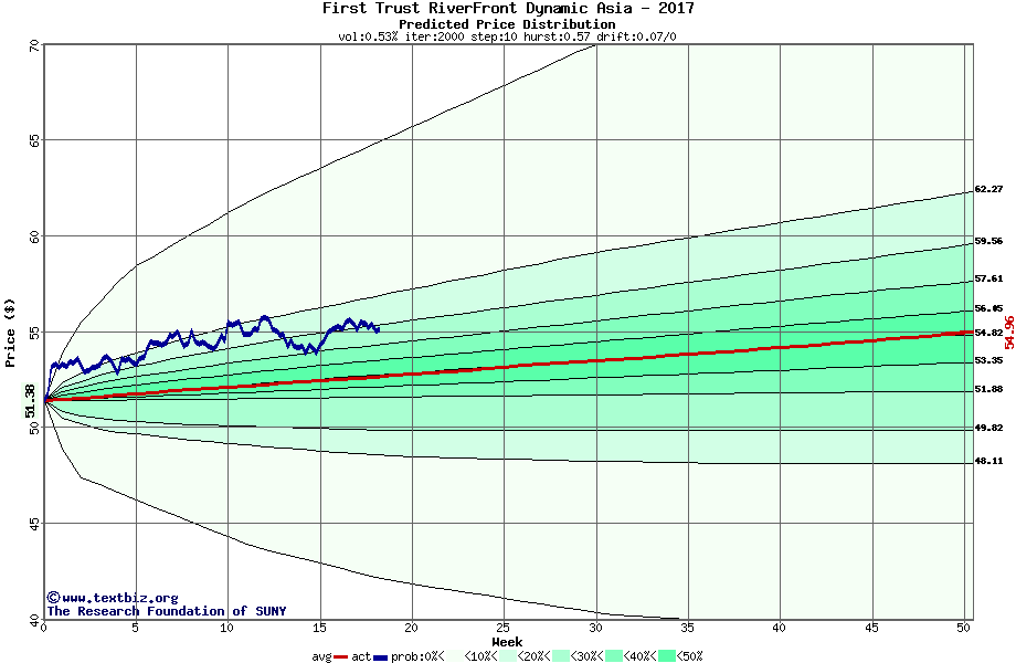 The following graph plots the year-to-date performance of the stock for 2017 compared to the probability calculated by a random walk model.