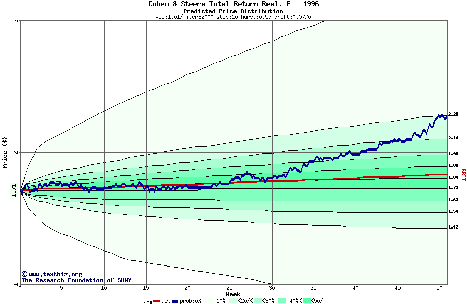 The following graph plots the year-to-date performance of the stock for 1996 compared to the probability calculated by a random walk model.