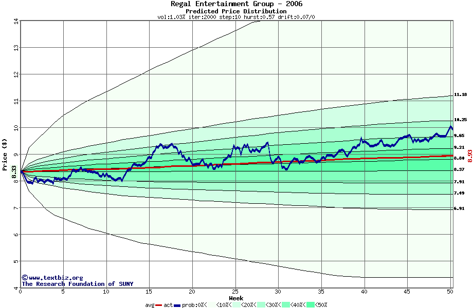 The following graph plots the year-to-date performance of the stock for 2006 compared to the probability calculated by a random walk model.