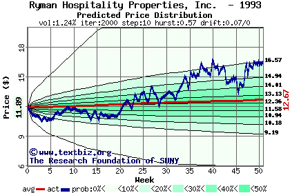 The following graph plots the year-to-date performance of the stock for 1993 compared to the probability calculated by a random walk model.
